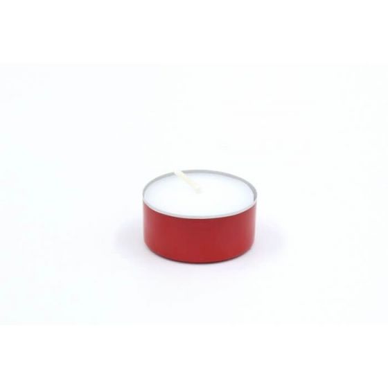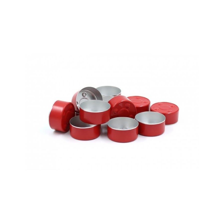 Alumininiai arbatiniai indeliai, raudonos spalvos. Galima pagaminti daug įvairių spalvų žvakučių.
