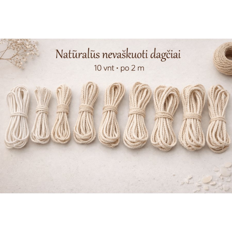 Dagtys iš medvilnės yra visiškai be švino ir kitų priedų. Jūsų pagamintos žvakės degs be suodžių